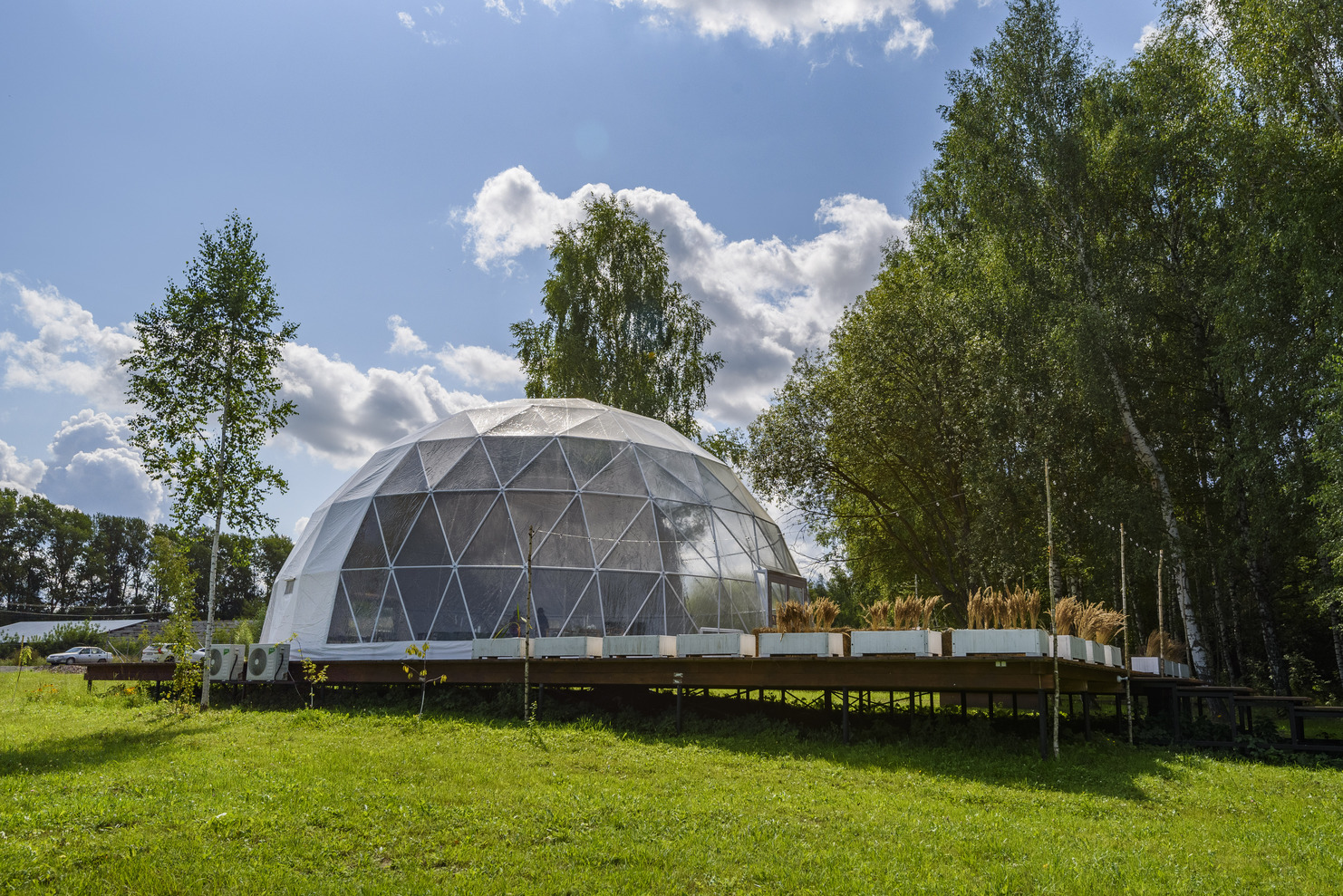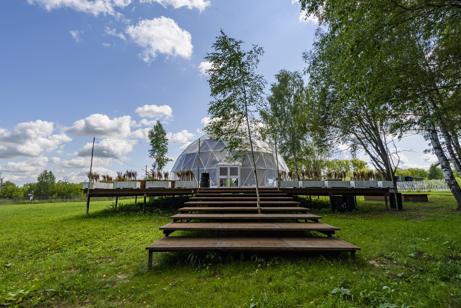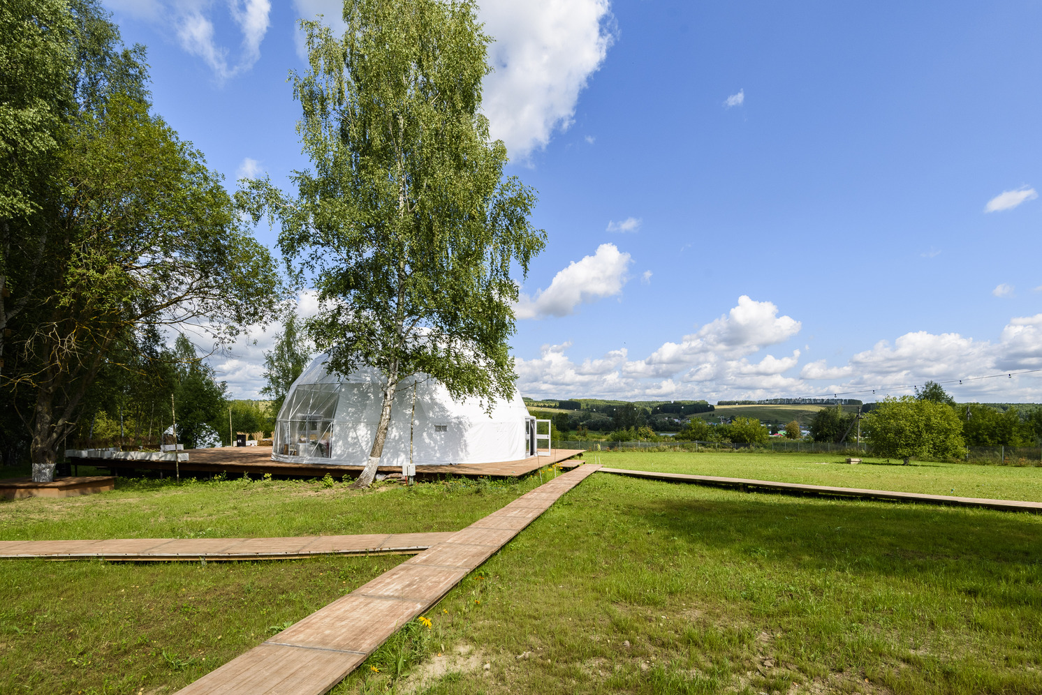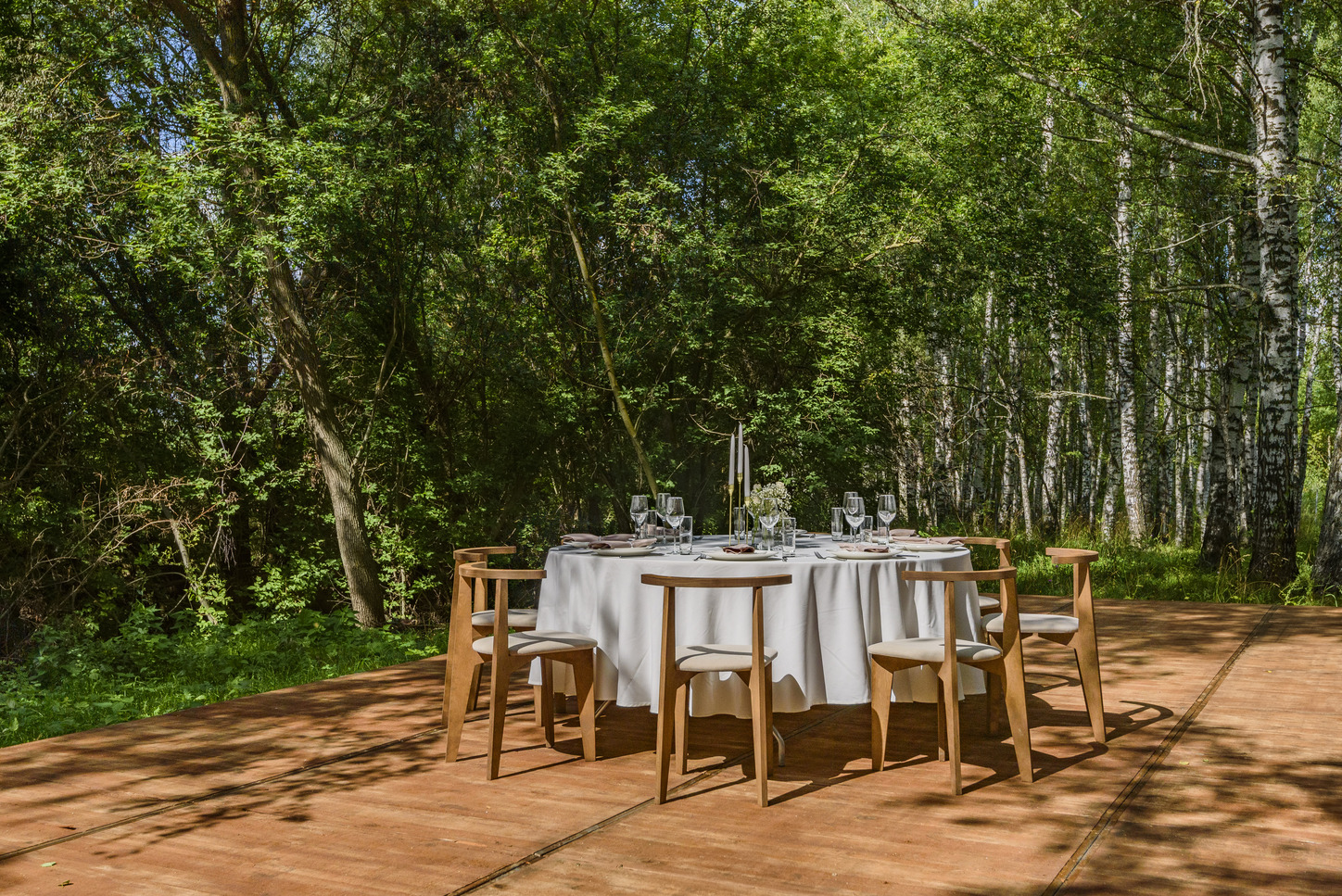 Идеальное место для фуршета, welcome-зоны или вечеринки. Вид на берёзовую рощу Раифского заповедника.